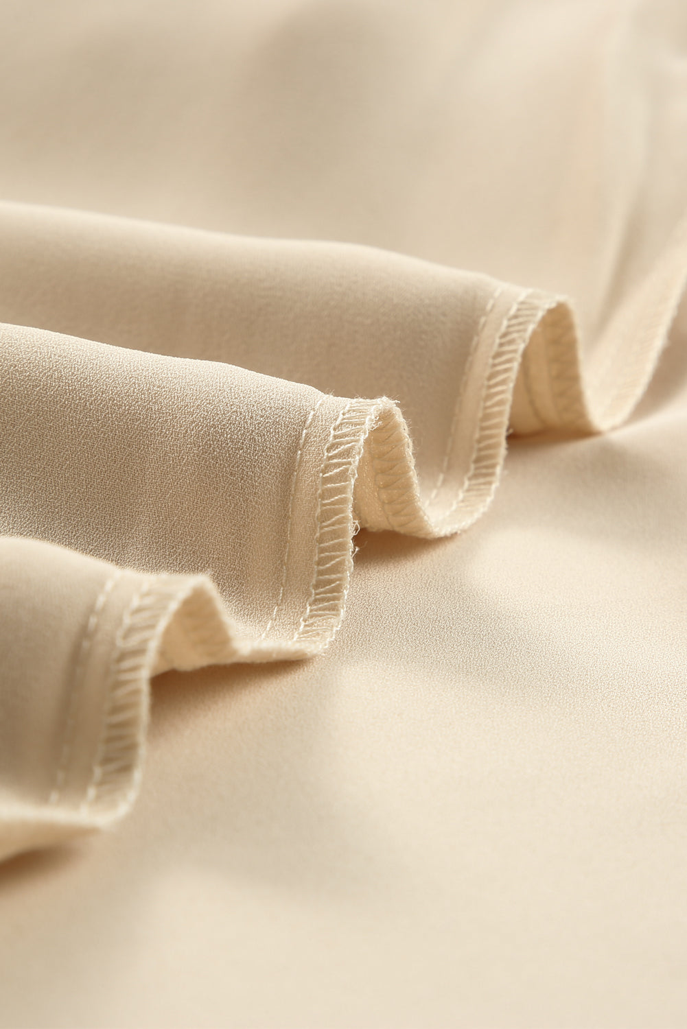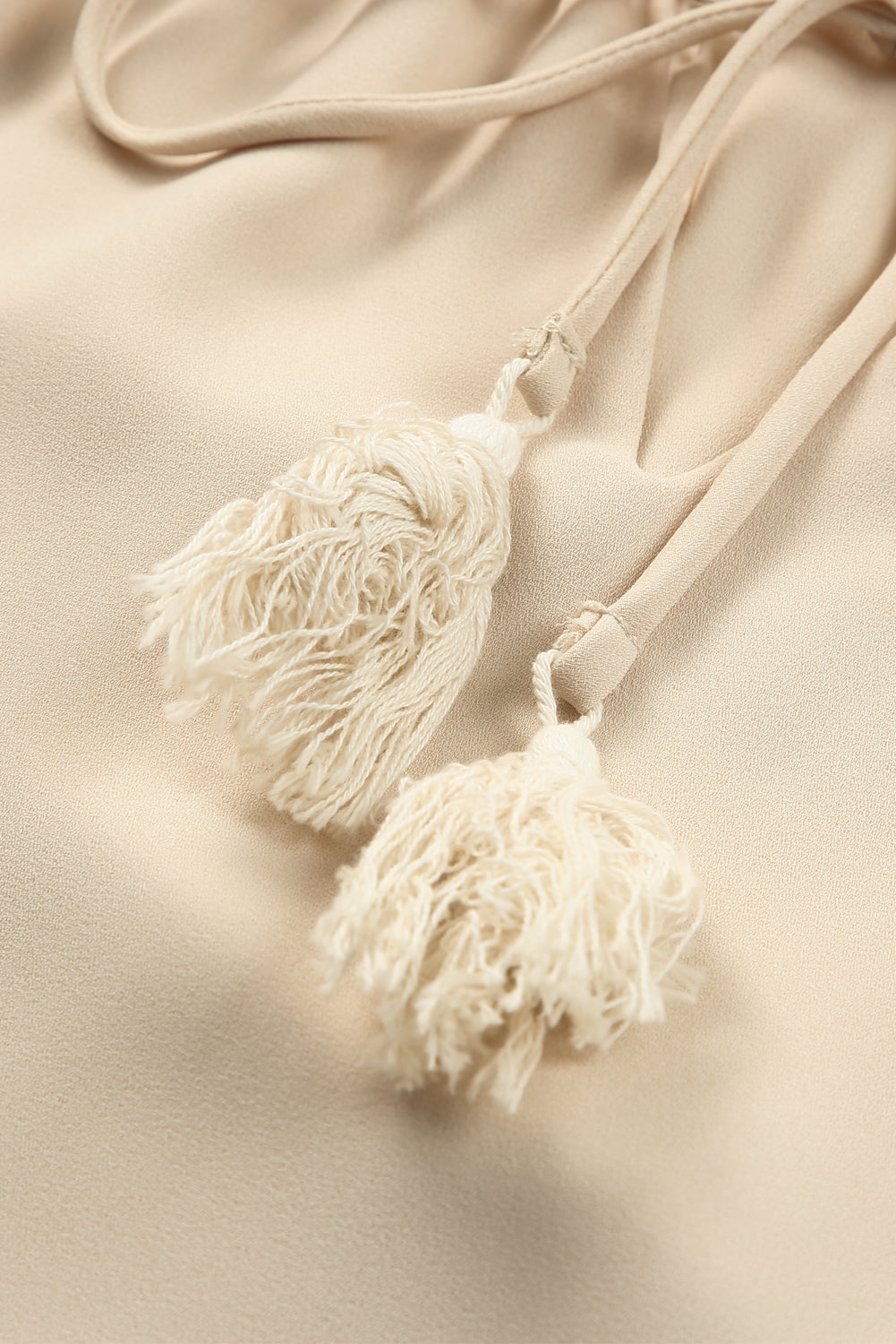 Beige Leopard Mesh Bubble Sleeve Split Neck Blouse