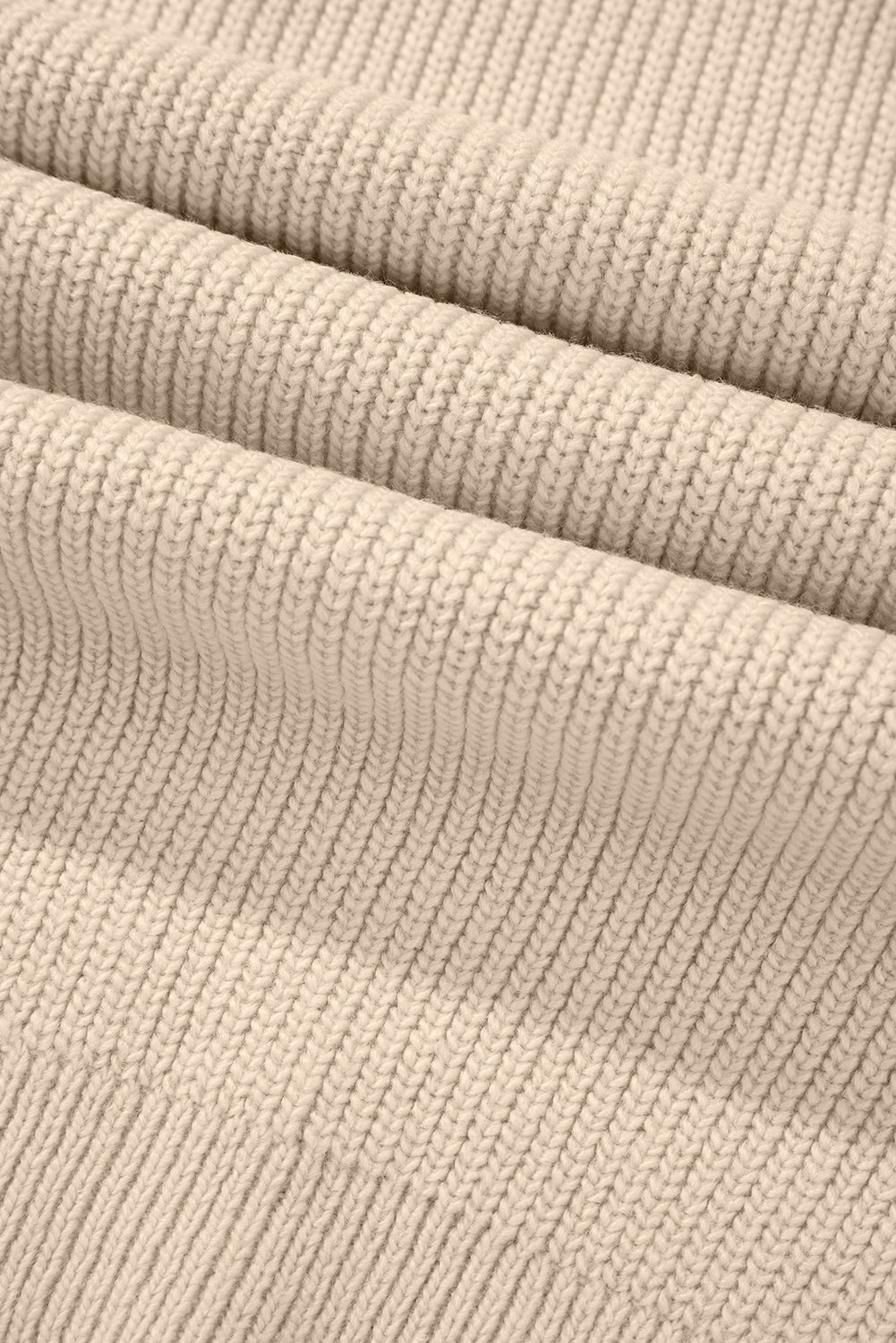 Beige Solid Color Drawstring Hooded Drop Shoulder Pullover Sweater