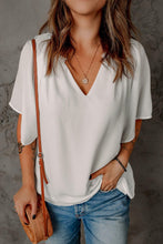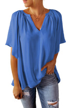 Beige Split Neck Pleated Loose Blouse