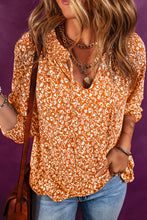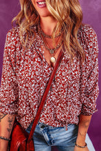 Biking Red Floral Print Smocked Tie Neck Blouse