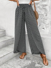 Black Bohemian Print Slit Wide Leg Smocked High Waist Pants