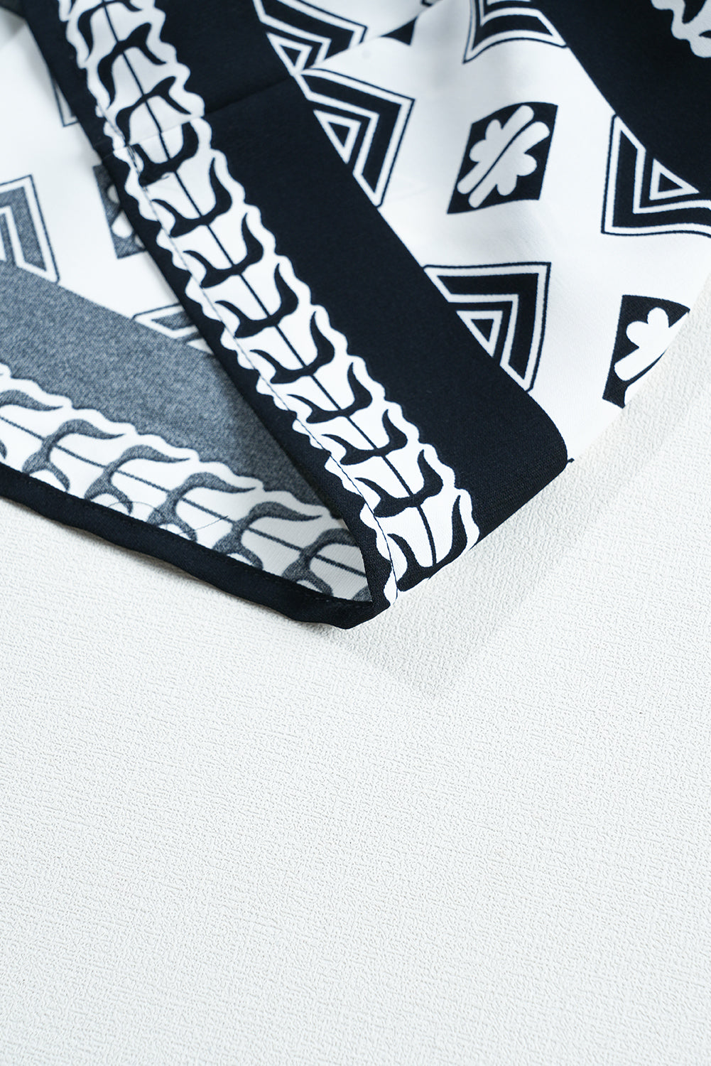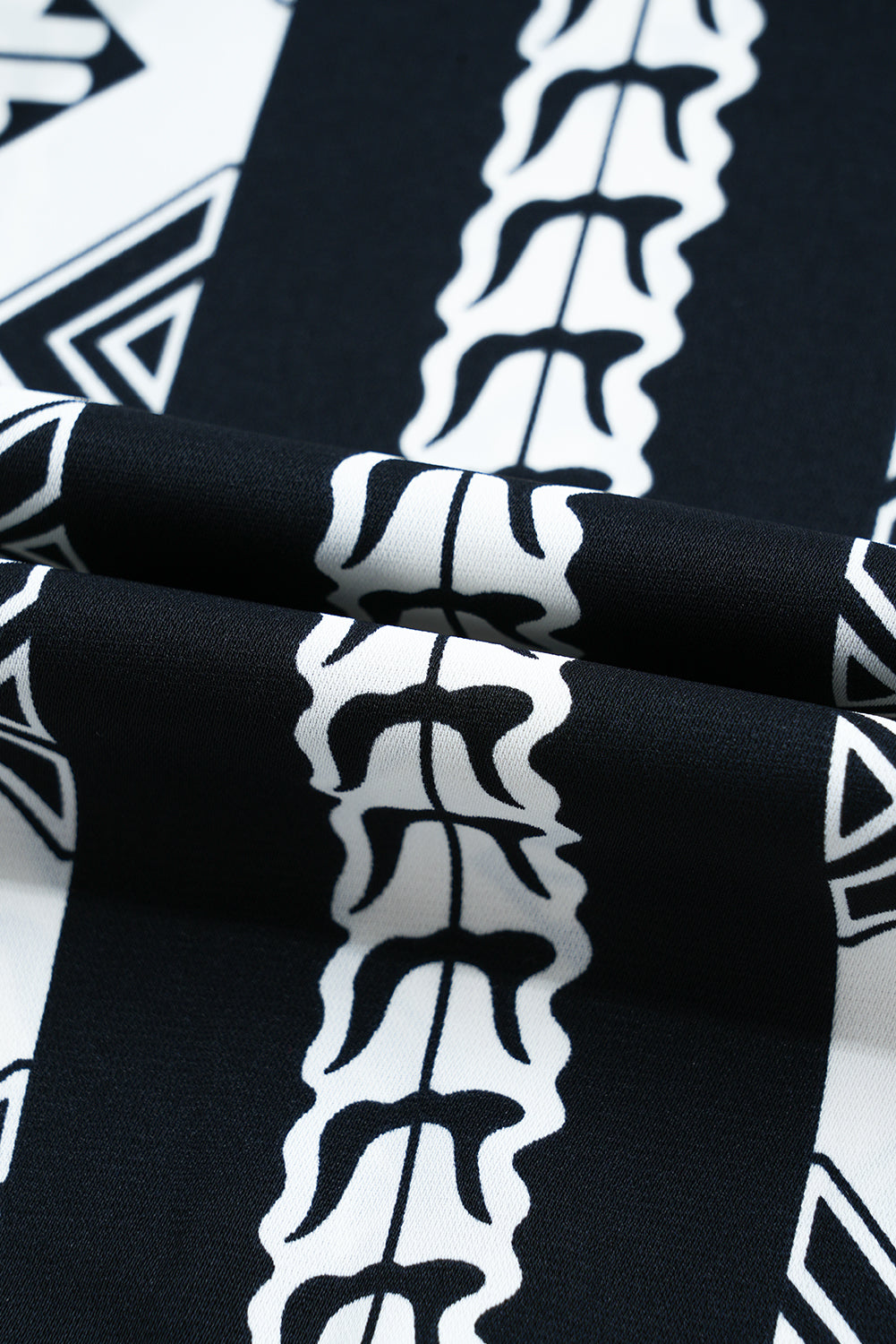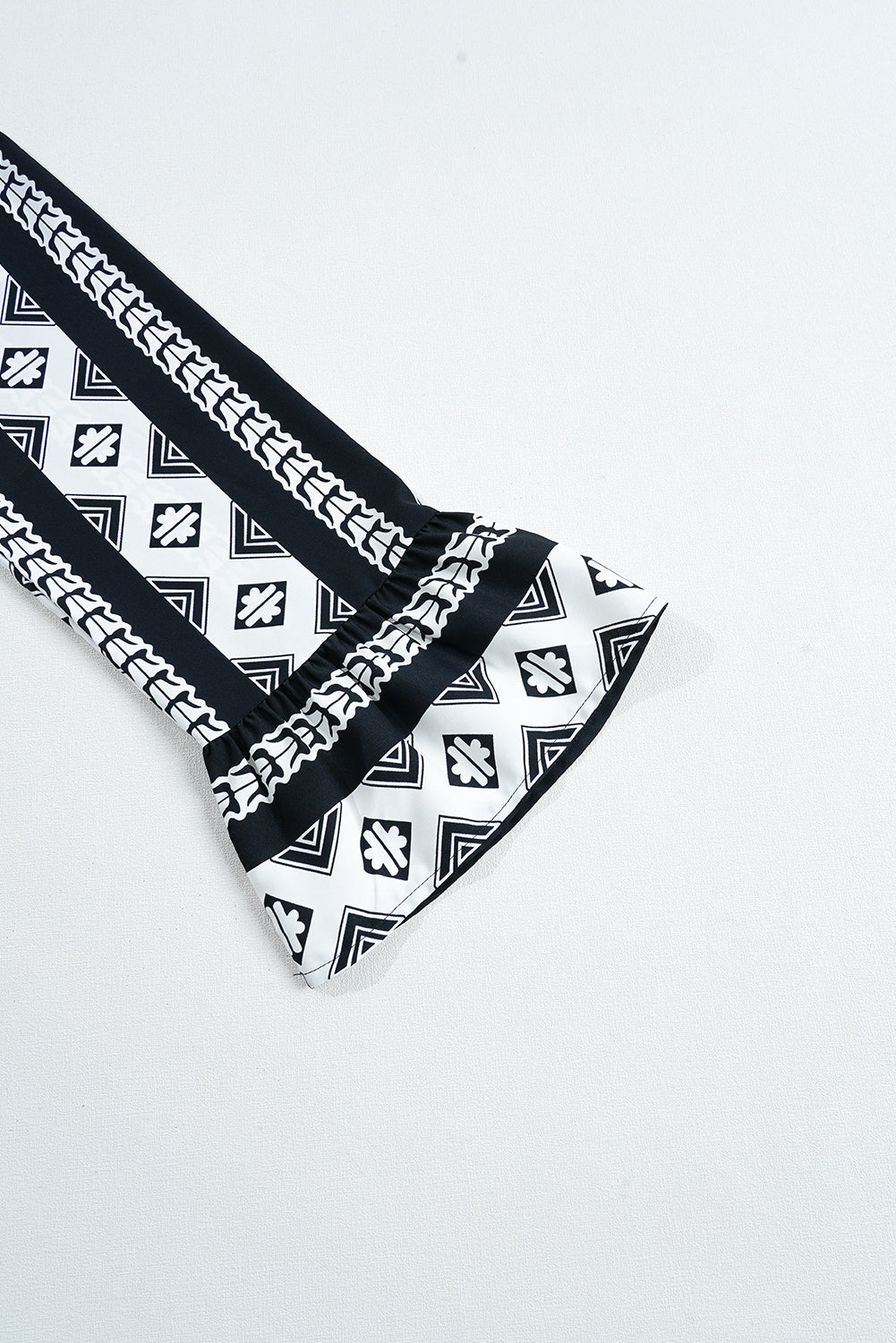 Black Boho Geometric Printed Flared Long Sleeve Mini Dress