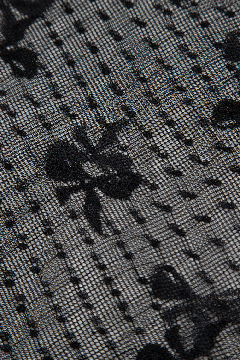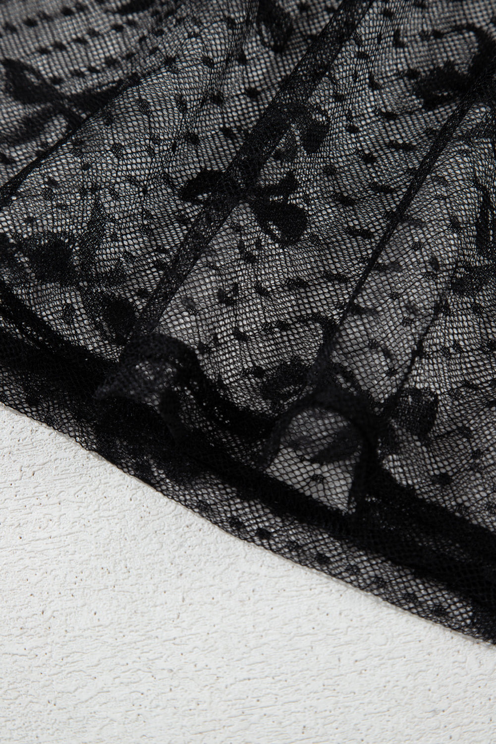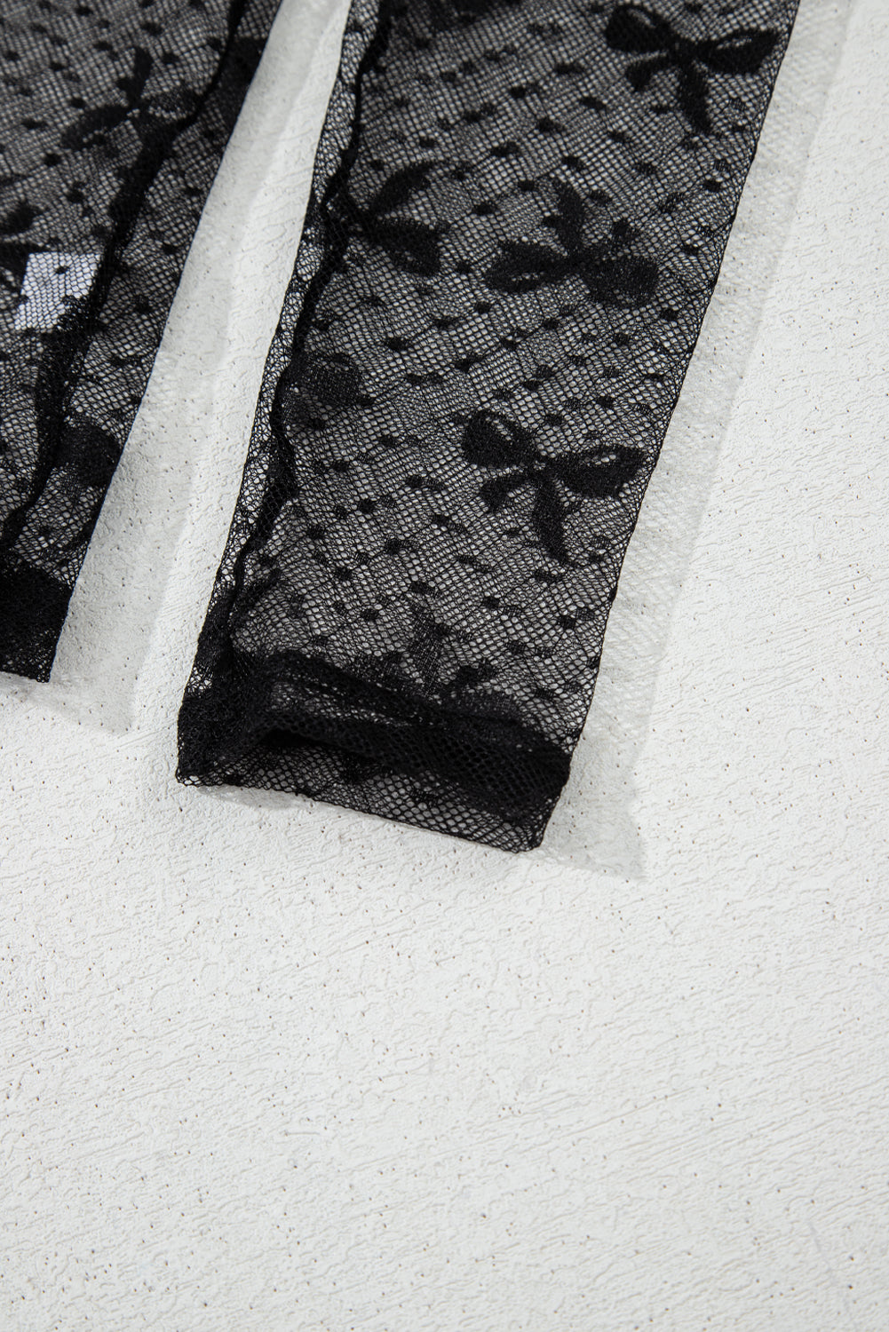 Black Bow Pattern Accent Mesh Long Sleeve Top