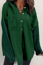 Black Button Up Contrast Knitted Sleeves Hooded Jacket