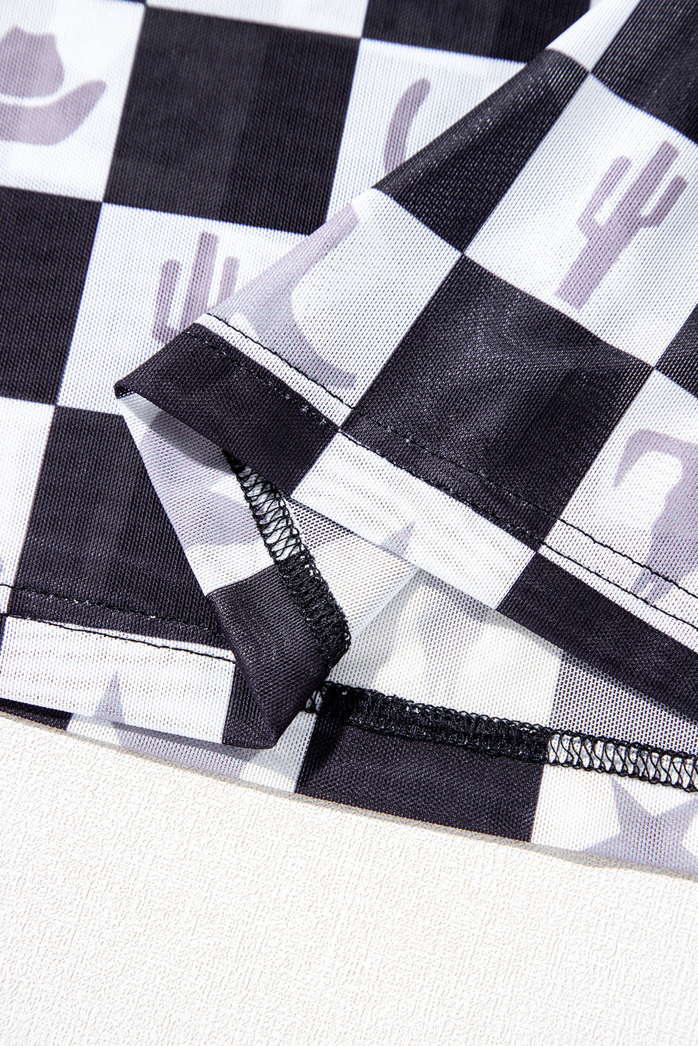 Black Checkerboard Western Elements Printed Mesh Long Sleeve Top