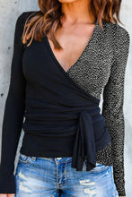 Black Contrast Printed Tie Side Wrapped Long Sleeve Top