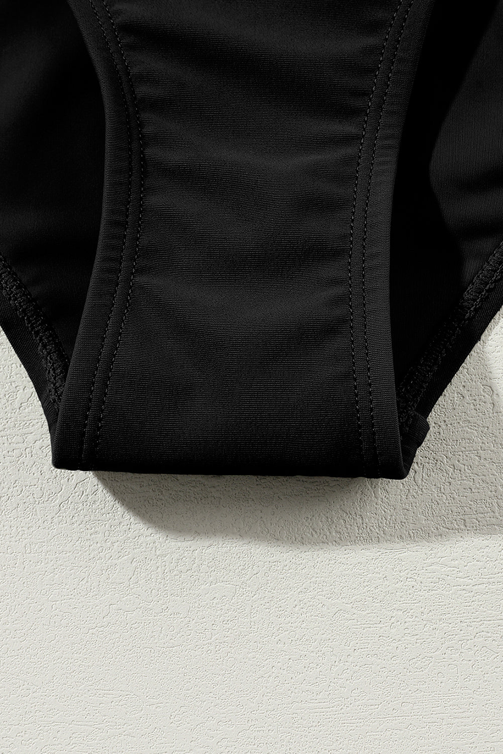 Black Contrast Trim Colorblock U Neck One Piece Swimwear