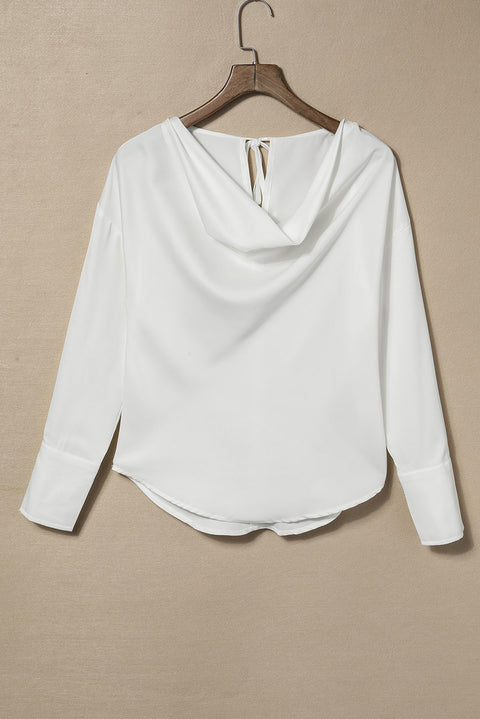 Black Cowl Neck Long Sleeve Elegant Blouse