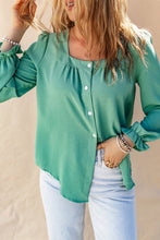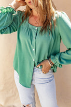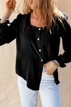 Black Flounce Sleeve Square Neck Button-Up Shirt