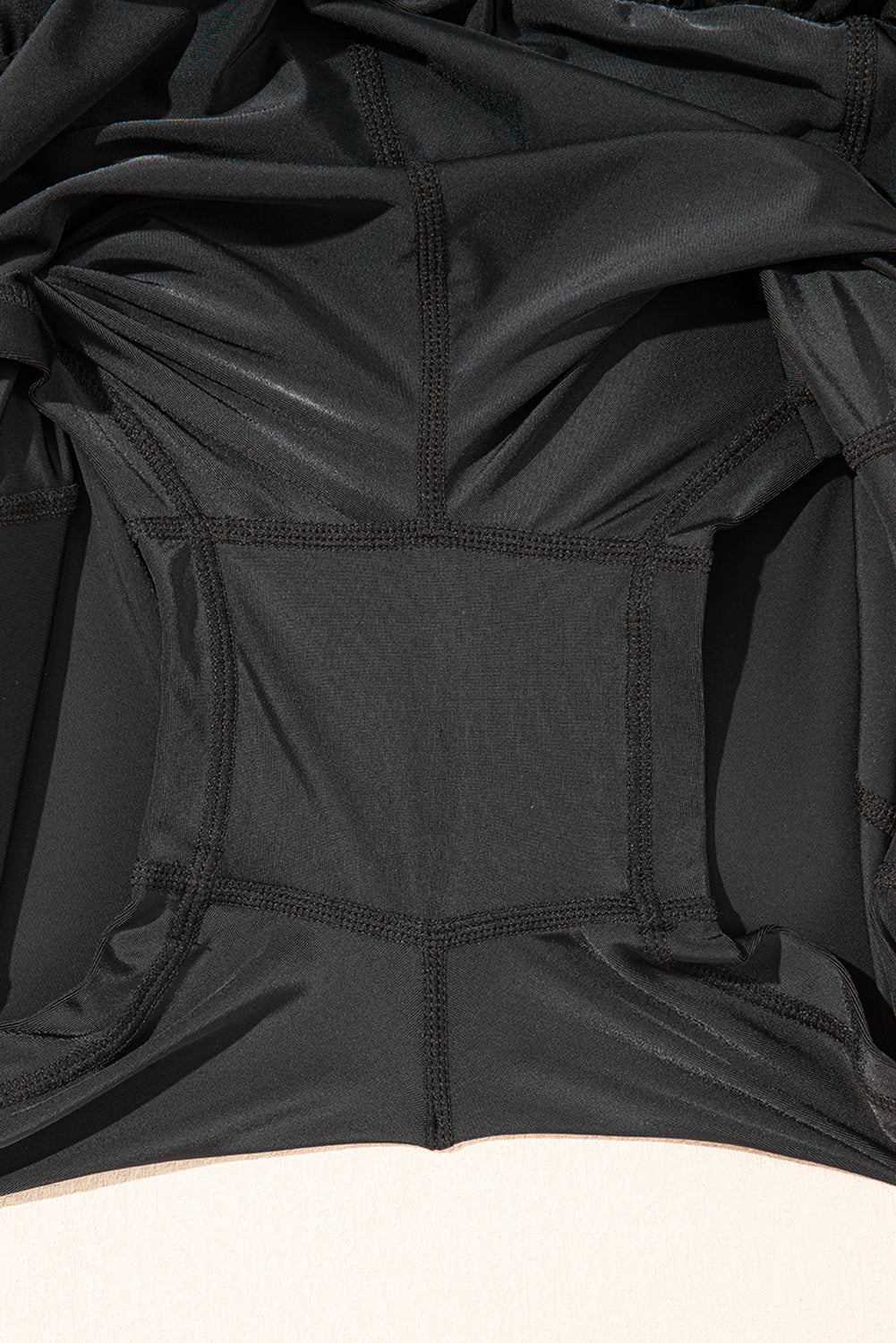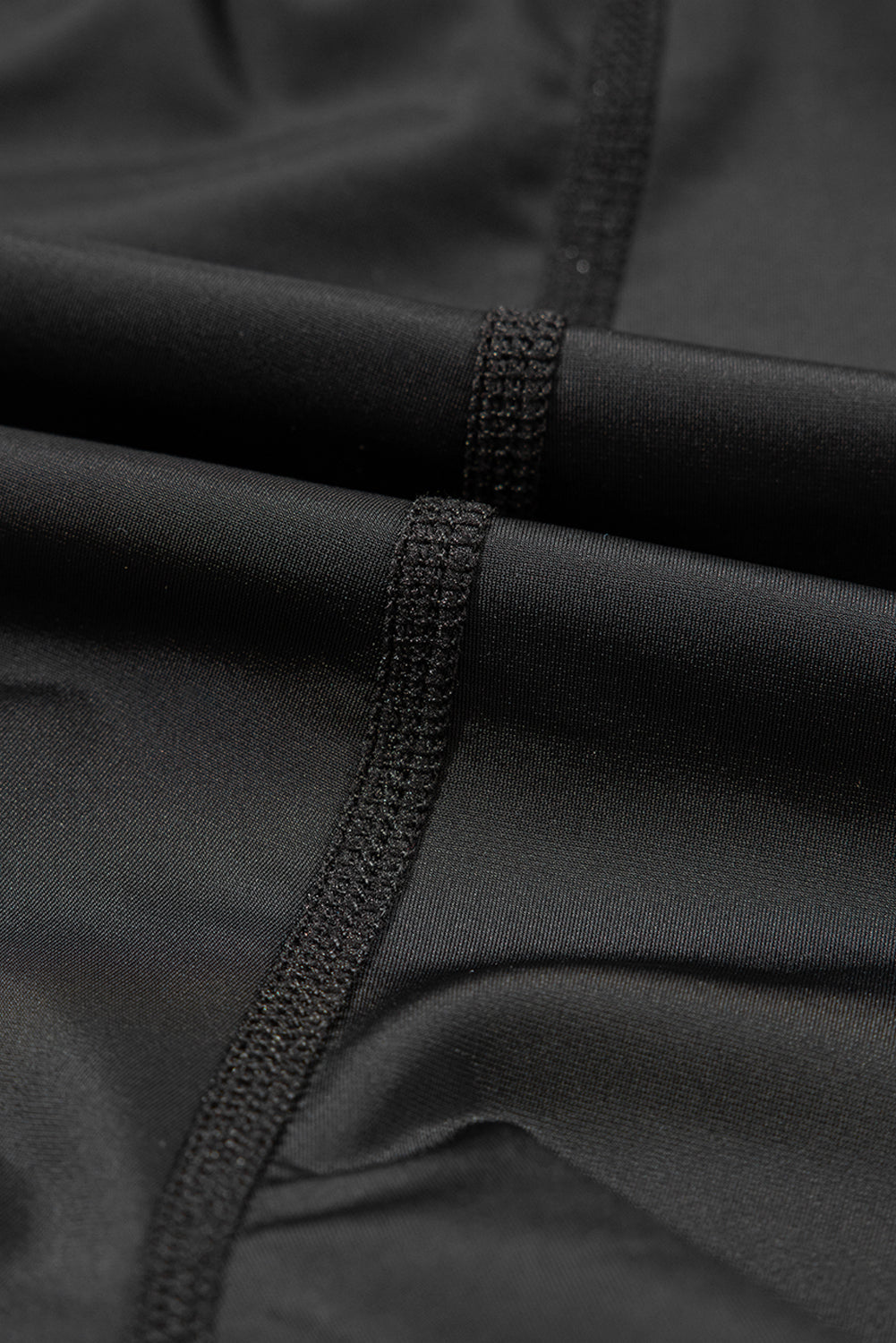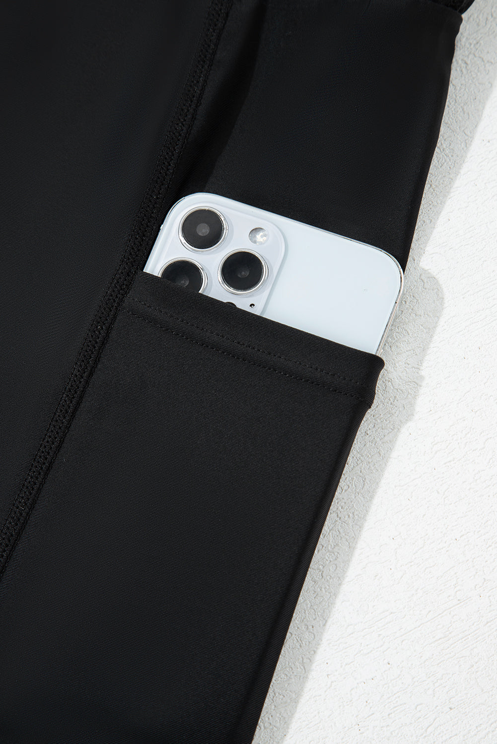 Black High Waisted Drawstring 2-in-1 Side Pocket Color Block Bikini Shorts