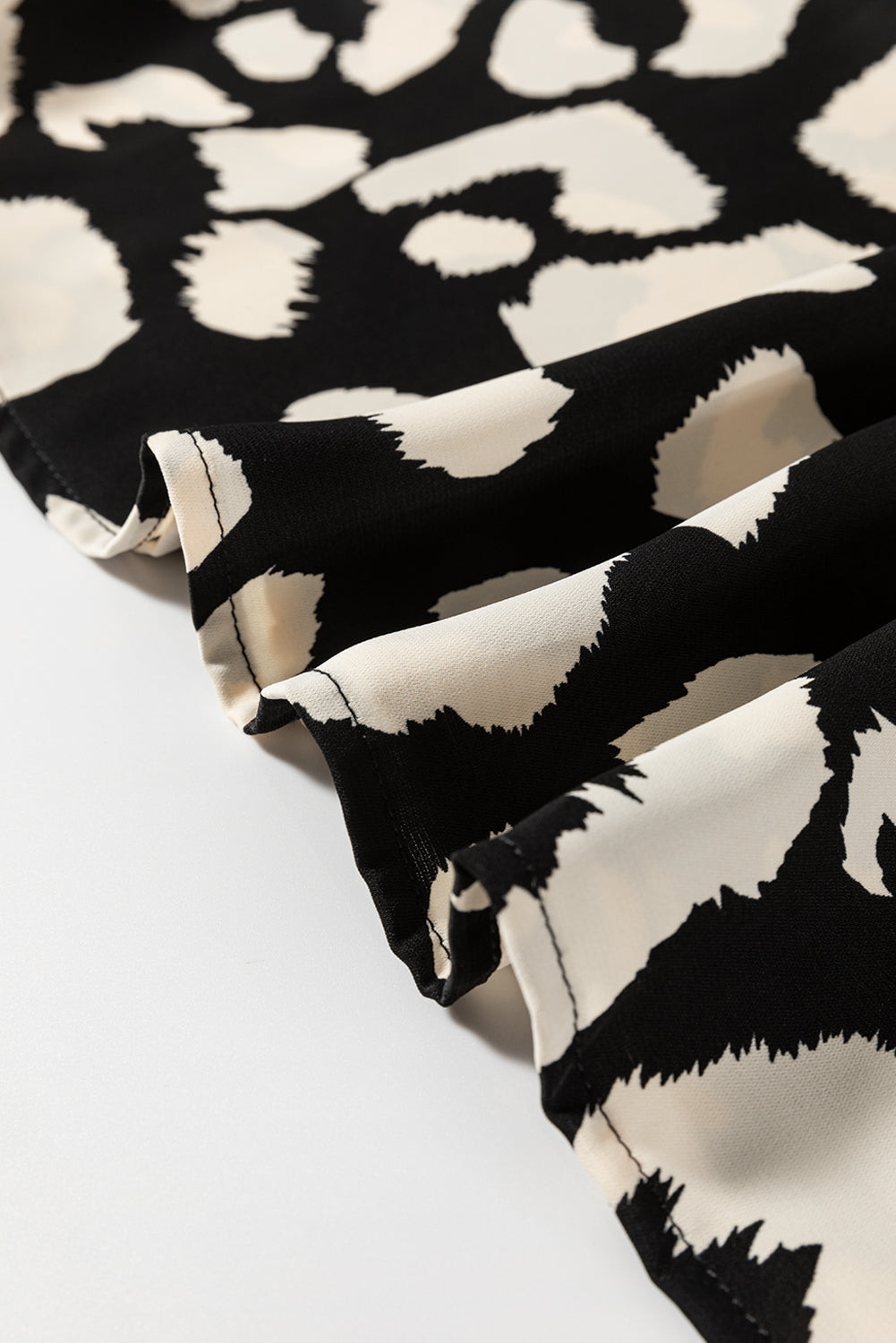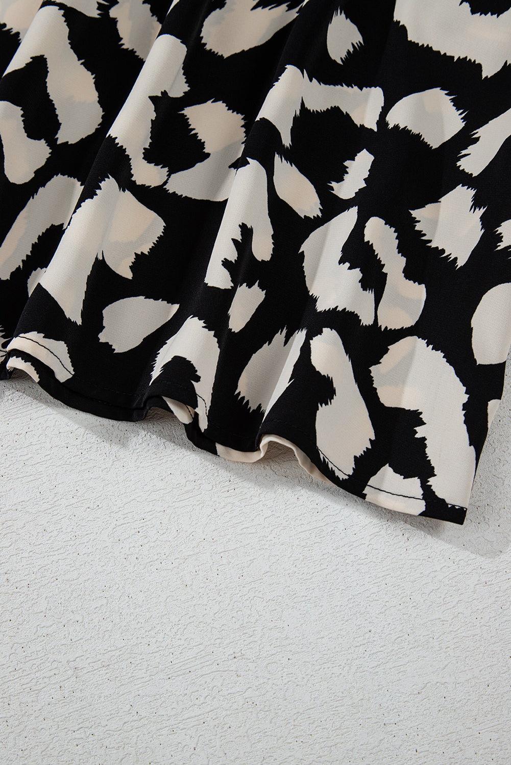 Black Leopard Print U Neck Sleeveless High Waist Dress