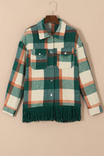 Black Plaid Snap Button Pocket Fringed Hem Jacket