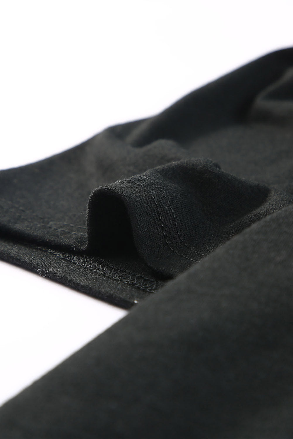 Black Plus Size Square Neck Ruched Shoulder Short Sleeve Top