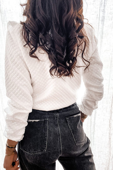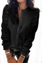 Black Quilted Ruffled Buttons Crew Neck Shirt