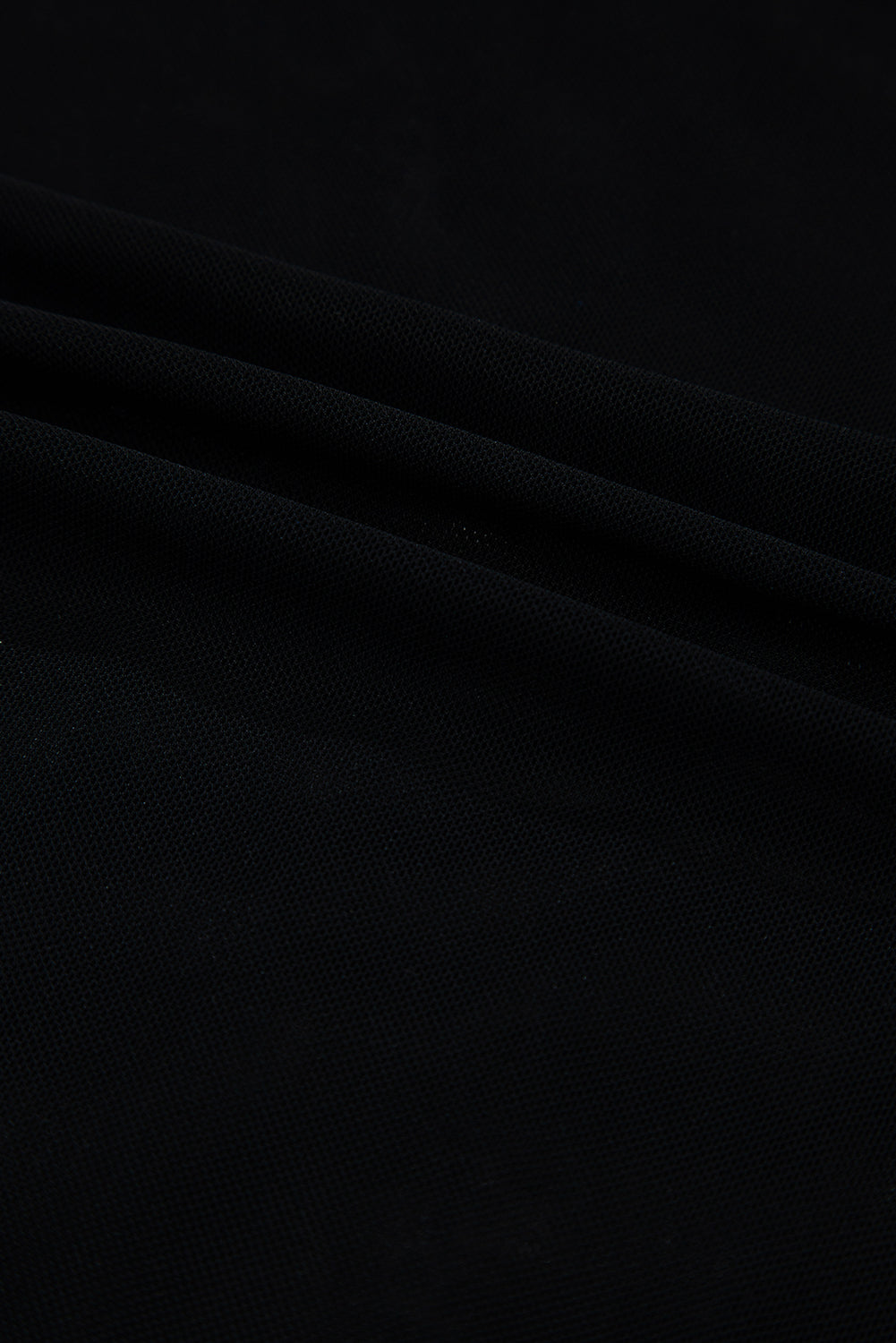Black Rhinestone Decor Striped Mesh Long Sleeve Bodysuit