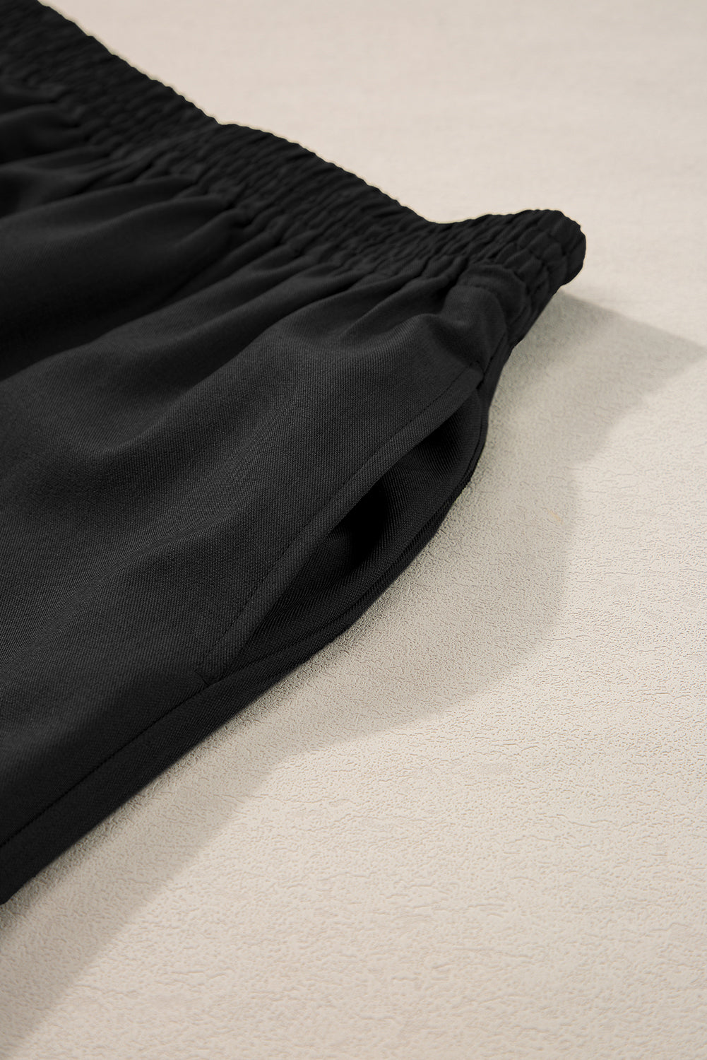 Black Ricrac Trim Tank Top Elastic Waist Shorts Set