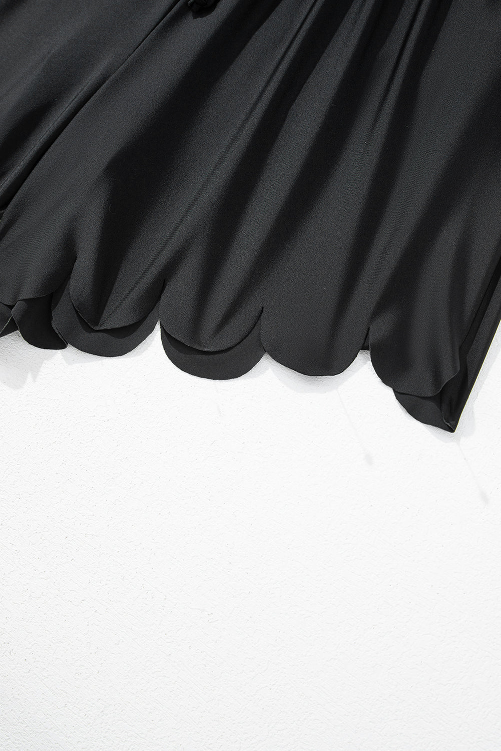 Upgrade your beach wardrobe with our Black Scalloped Trim Beach Shorts. These shorts are designed to provide maximum comfort and style with its unique scalloped trim and black color. Perfect for a day at the beach or a casual stroll on the boardwalk. Made with high-quality materials for long-lasting wear.