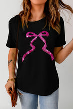 Black Sequin Bow Ribbon Graphic T Shirt