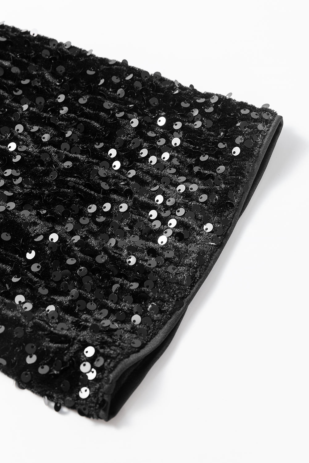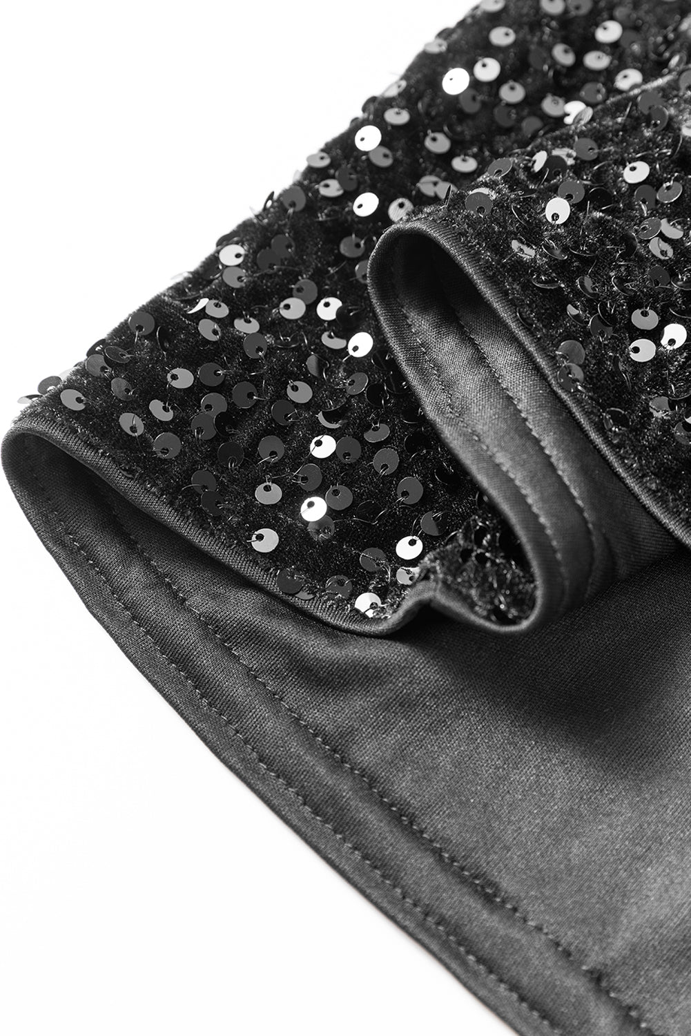 Black Sequin Long Sleeve Knot Cutout Back Mini Dress