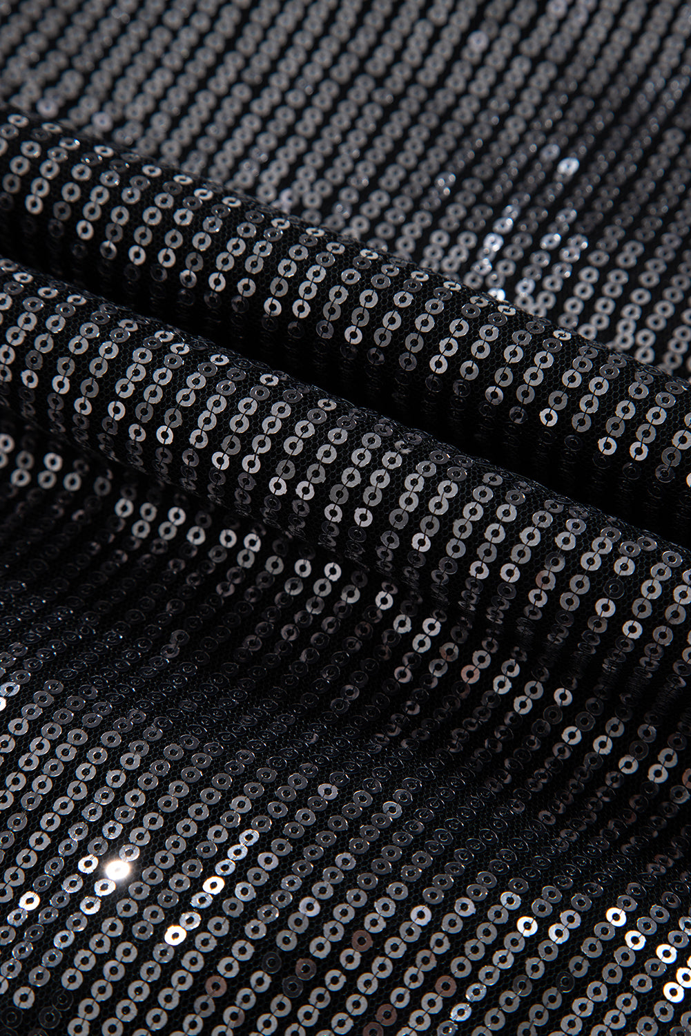 Upgrade your wardrobe with our Black Sequin Mesh Long Sleeve Surplice Neck Bodysuit. Featuring a flattering surplice neck and long sleeves, this bodysuit is perfect for any occasion. The black sequins add a touch of glamour while the mesh fabric keeps you cool and comfortable. Elevate any outfit with this stunning piece.