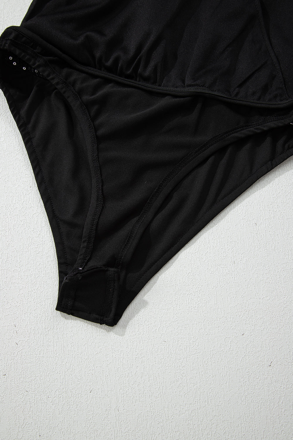 Black Sequin Mesh Long Sleeve Surplice Neck Bodysuit