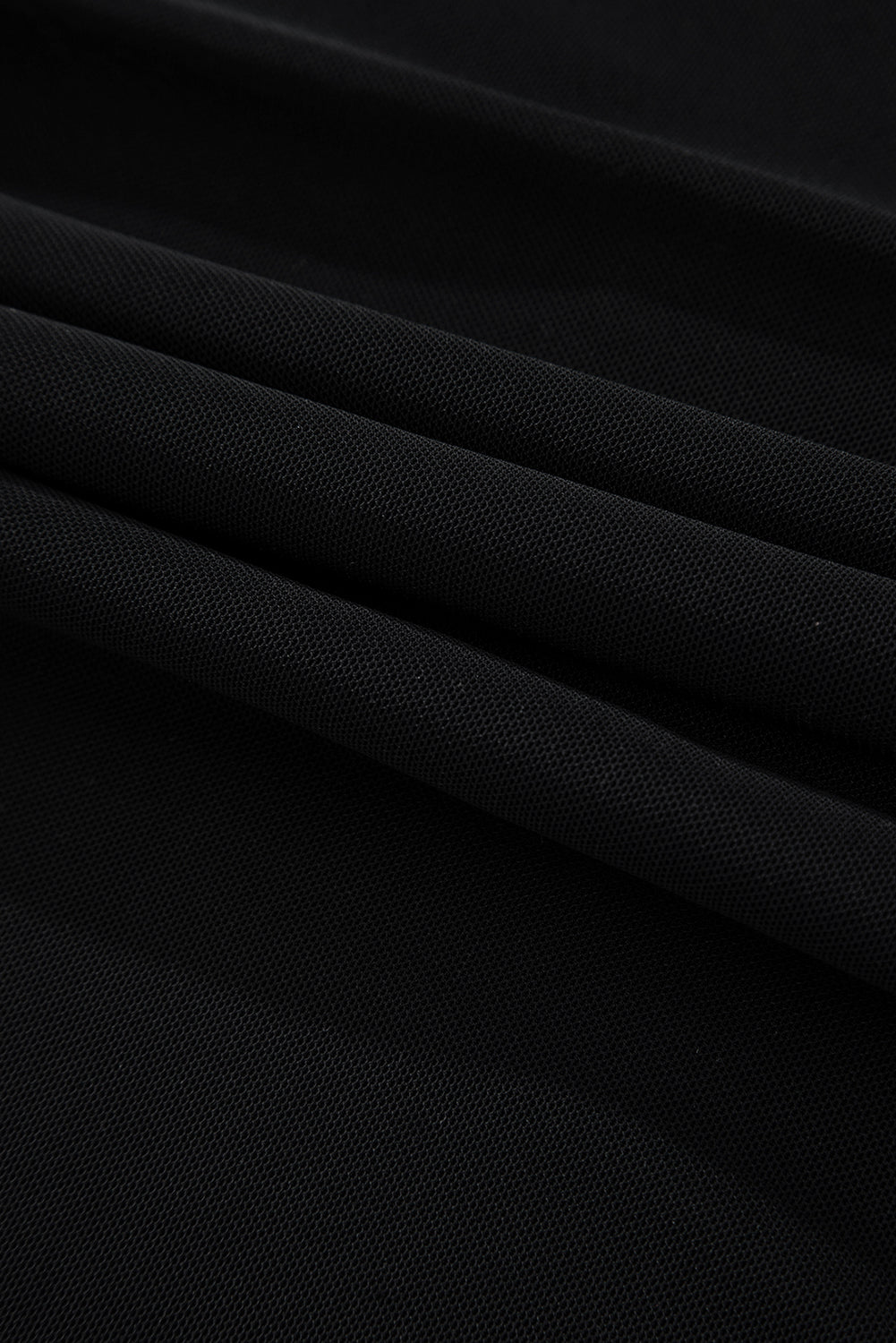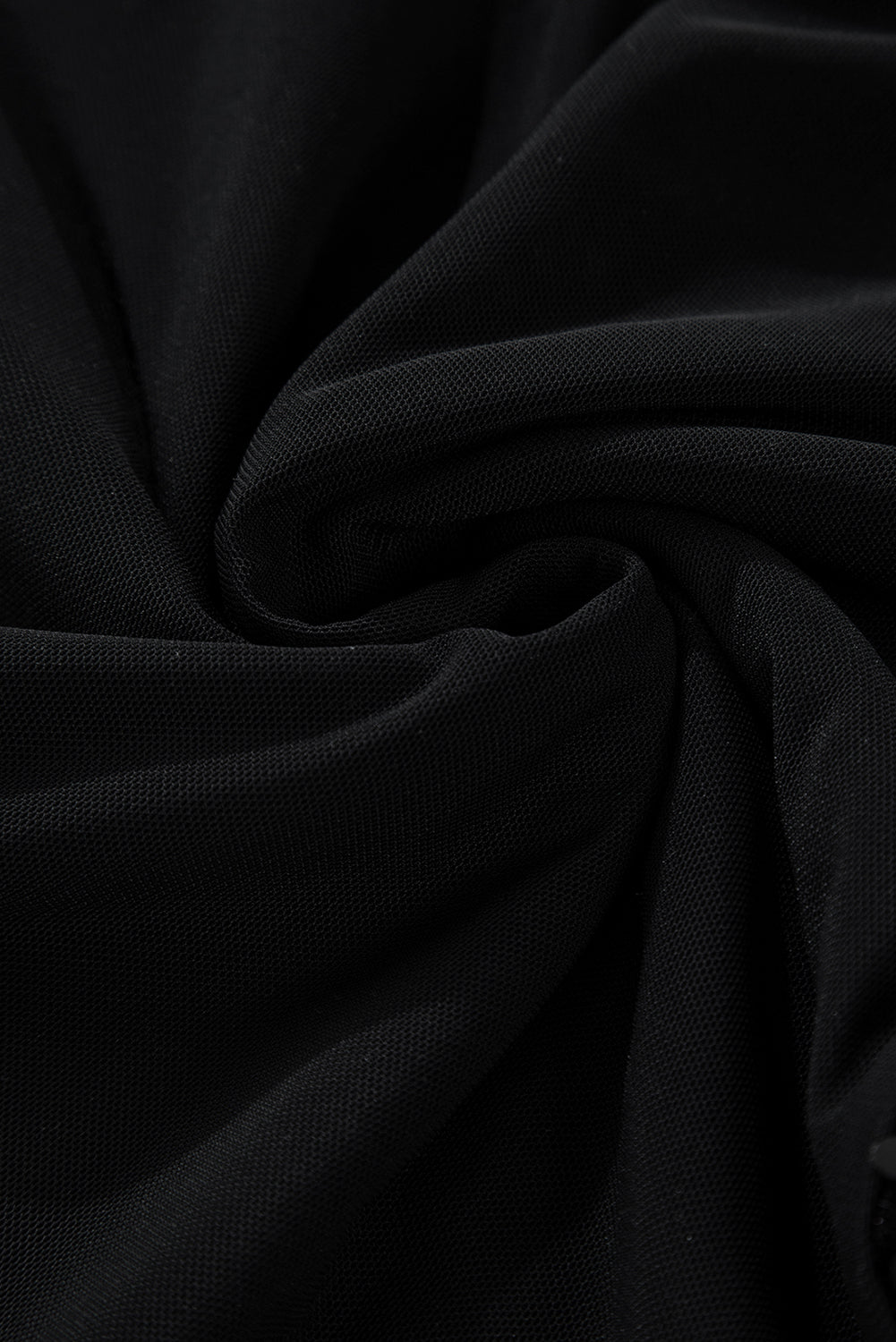 Black Sequin Velvet Sheer Mesh Mock Neck Blouse