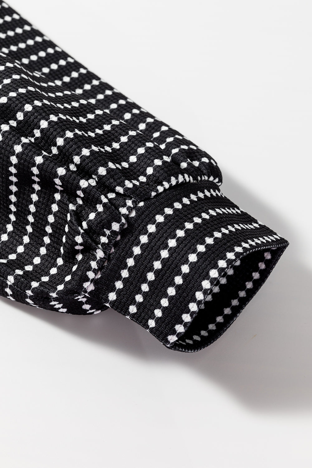 Black Striped V Neck Long Puff Sleeve Shift Dress