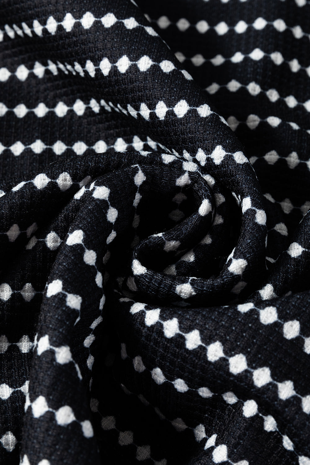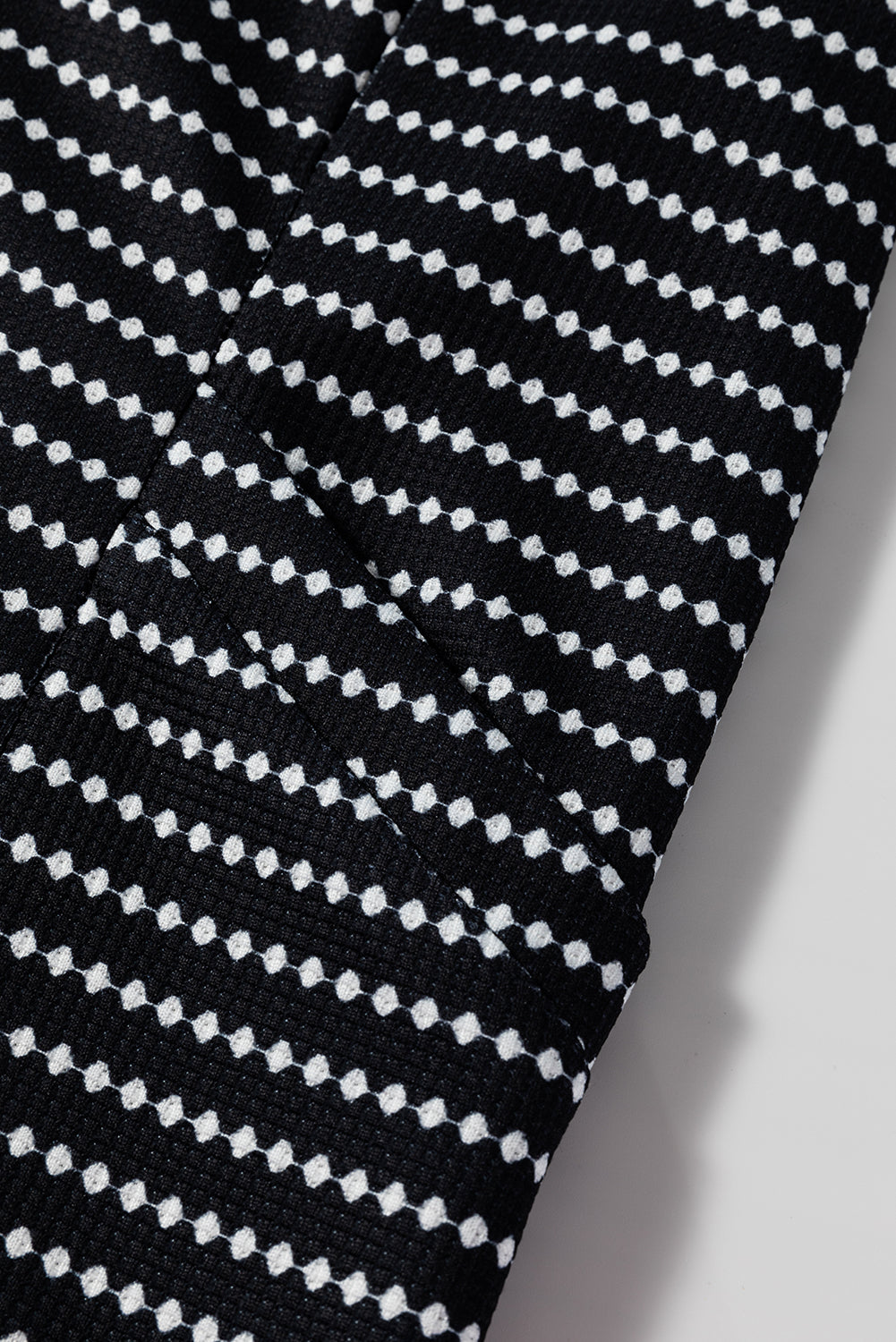 This black striped v-neck long puff sleeve shift dress is a versatile and stylish addition to any wardrobe. Made with high-quality fabric, it offers both comfort and durability. The v-neck design and long puff sleeves add a touch of elegance, making it perfect for both casual and formal occasions.