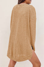 Black Waffle Knit High Slits Oversized Top