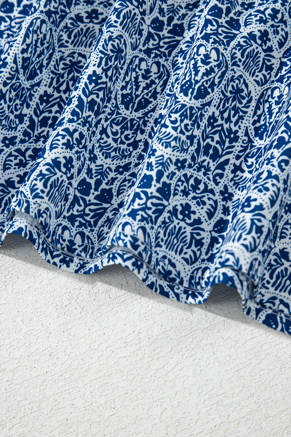 This Blue Floral Striped Print Contrast Ric-rac Puff Sleeve Top is a stylish and versatile piece that will elevate any outfit. The vibrant floral print, paired with the unique striped contrast detailing and playful ric-rac trim on the puff sleeves, adds a touch of whimsy to this top. Made with high-quality materials, it offers both comfort and durability. Perfect for any occasion.