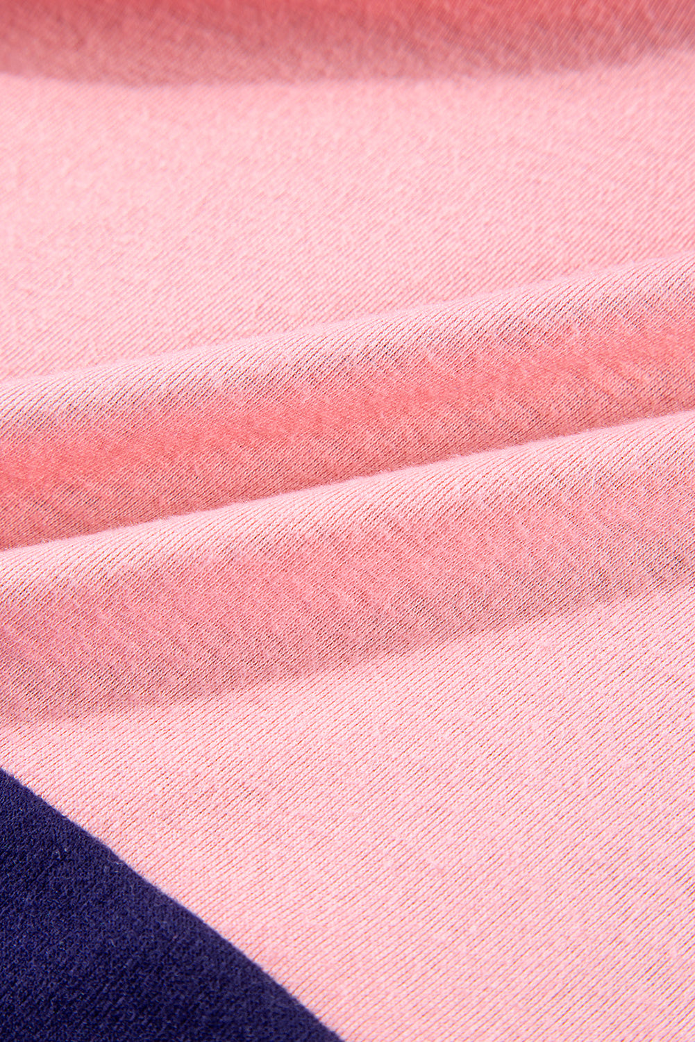 Blue Stripe Colorblock Button Decor Long Sleeve V Neck Top