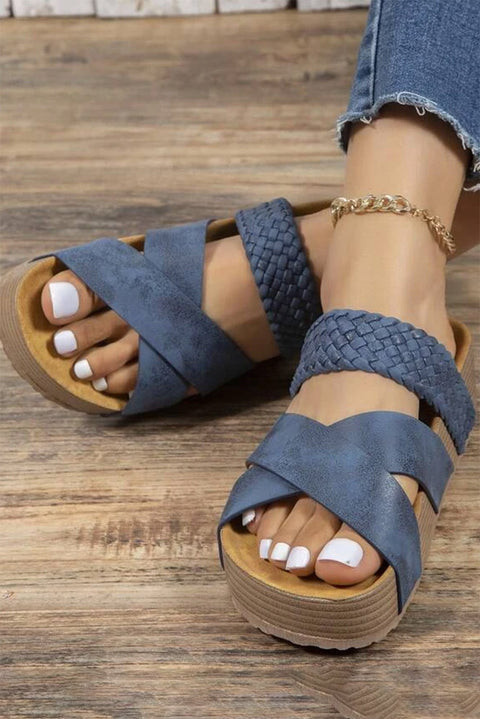 Braided Detail Criss Cross Platform Slippers