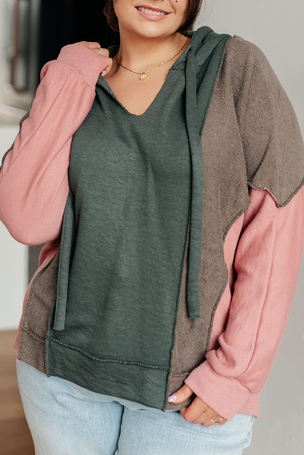Breen Plus Size Colorblock Patchwork V Neck Hoodie