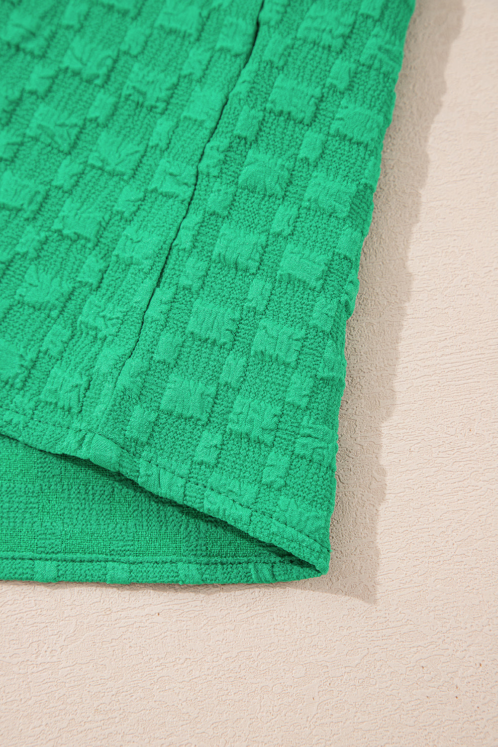 Effortlessly elevate your wardrobe with our Bright Green Textured Puff Short Sleeve Notched V Neck Top. Crafted with unique texture and a flattering notched v-neckline, this top offers a stylish and versatile look. The puffed short sleeves add a touch of femininity while keeping you comfortable all day long.
