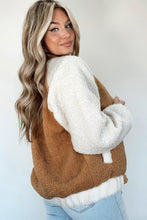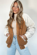Brown Contrast White Sleeve Snap Button Sherpa Jacket
