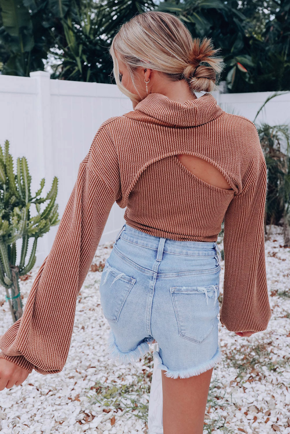 - The matching bolero has a turtle neck, long balloon sleeves, and ribbed cuffs