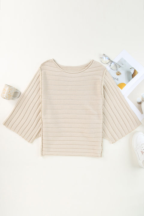 Brown Exposed Seam Ribbed Knit Dolman Top