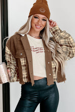Brown Plaid Patchwork Distressed Hooded Cropped Jacket