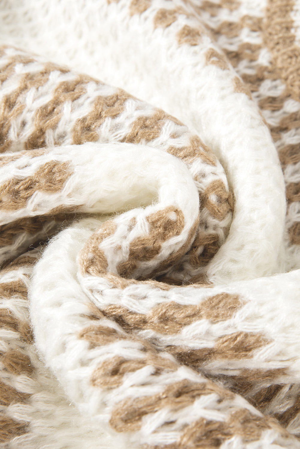 Brown Stripe Drop Shoulder Round Neck Loose Sweater
