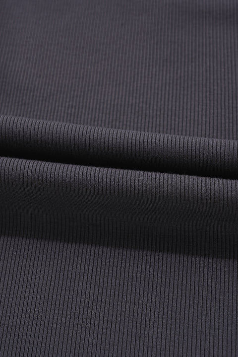 Carbon Grey Ribbed Knit Colorblock Edge U Neck Slim Fit Tank Top