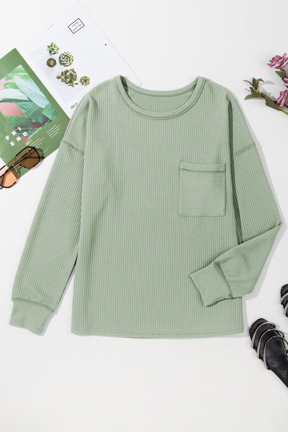 Introducing our Clearly Aqua Solid Color Corded Drop Shoulder Long Sleeve Top. With its unique corded fabric, this top provides a comfortable and stylish fit. The drop shoulder design adds a touch of elegance while the long sleeves provide additional coverage. Upgrade your wardrobe with this must-have top.