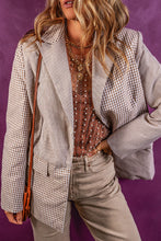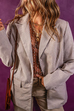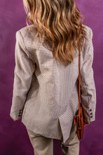 Coffee Plaid Patchwork Pocketed Single Breasted Blazer