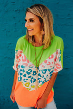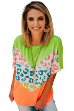Color Block Leopard Waffle Knit Patchwork T-Shirt