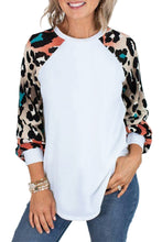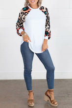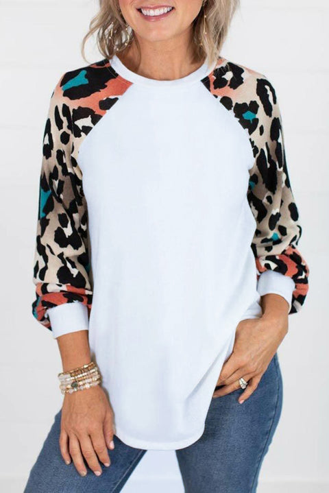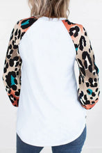 •The colorful leopard splicing long sleeves light up this top