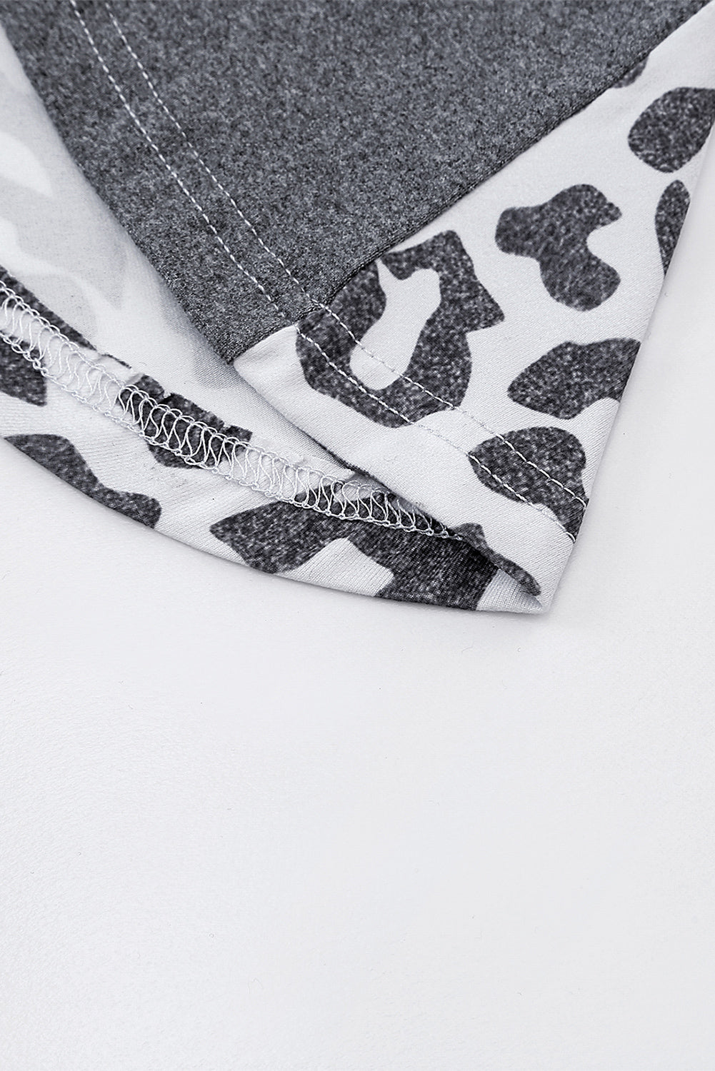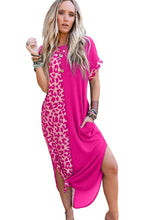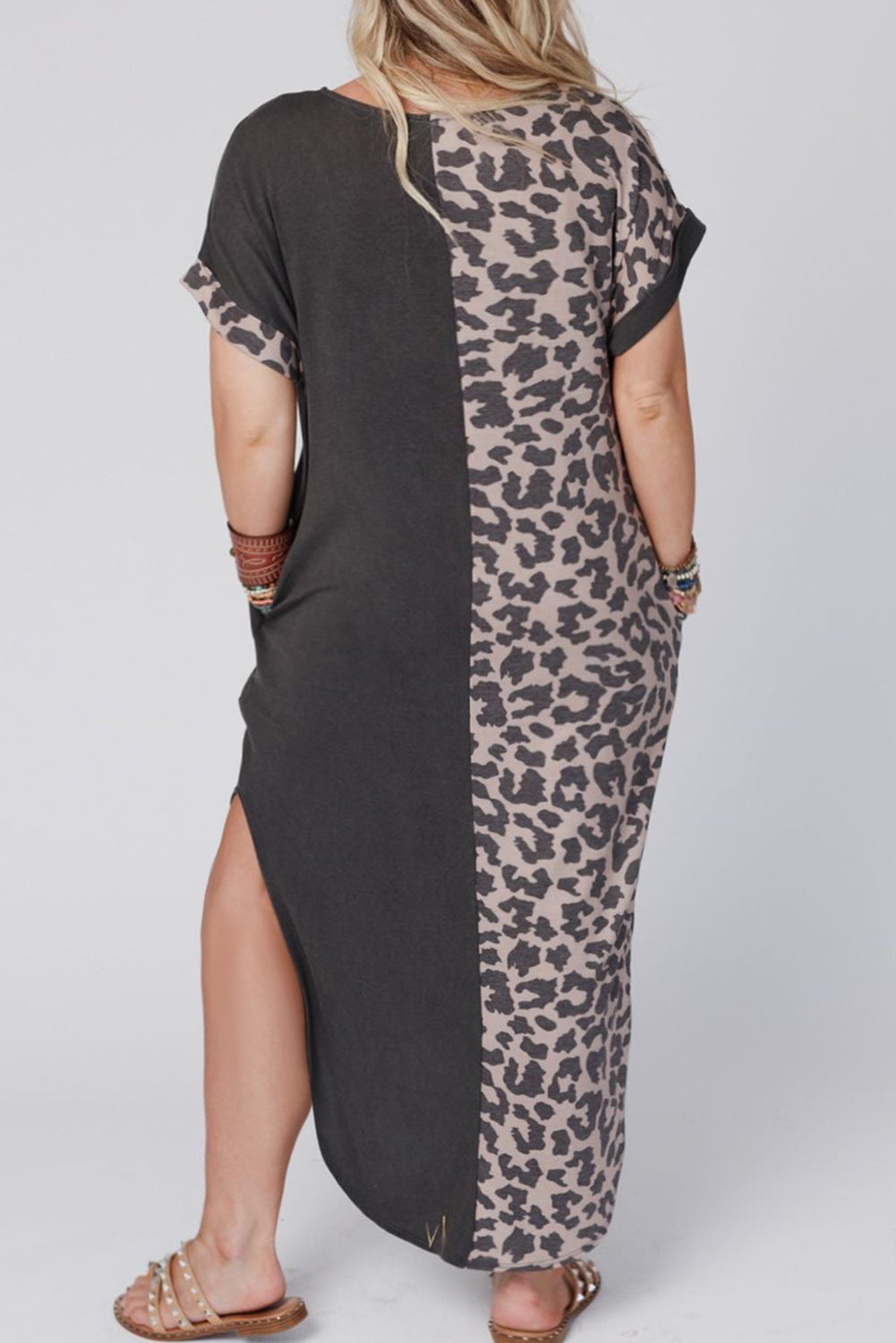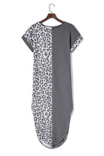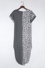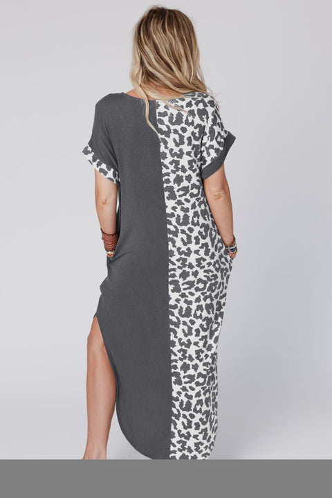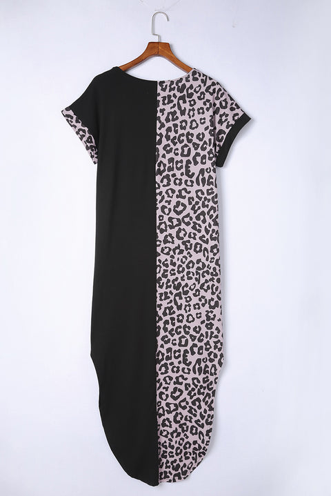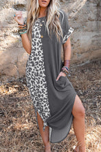 Contrast Solid Leopard Short Sleeve T-shirt Dress with Slits