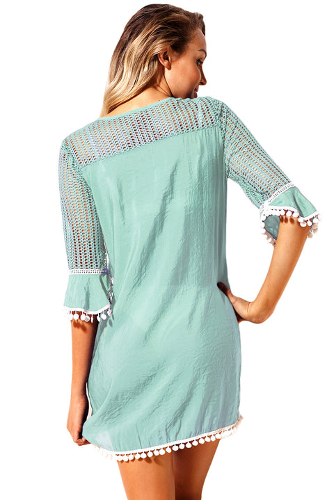 Crochet Pom Pom Trim Beach Tunic Cover up