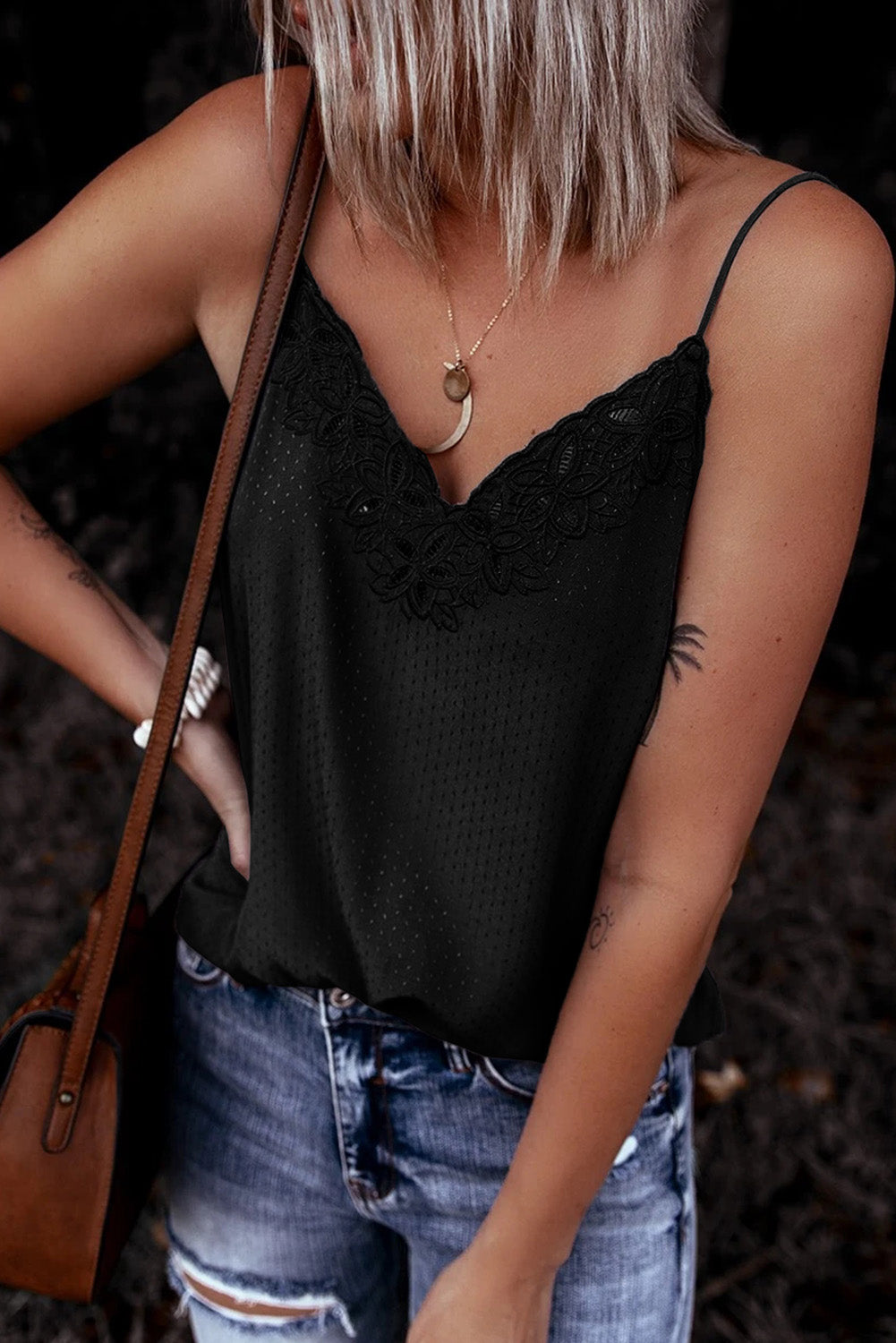 •The sexy alluring design includes a crochet v neck, spaghetti straps and flowy fit silhouette
