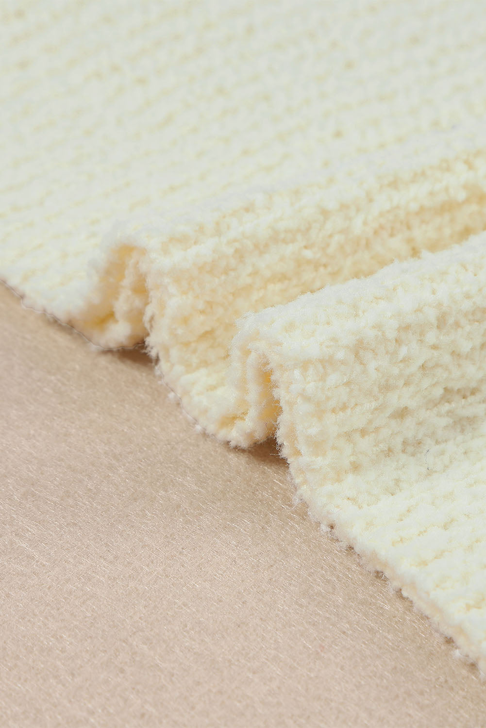 Apricot Cropped V Neck Fuzzy Sweater
