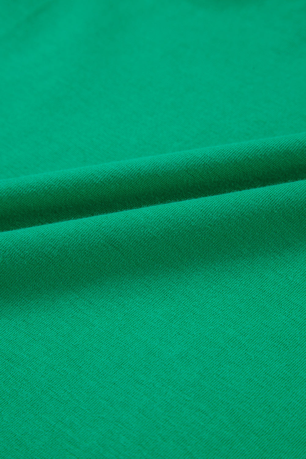 Dark Green Embroidered Ruffled Sleeve Slim Fit Crew Neck Top