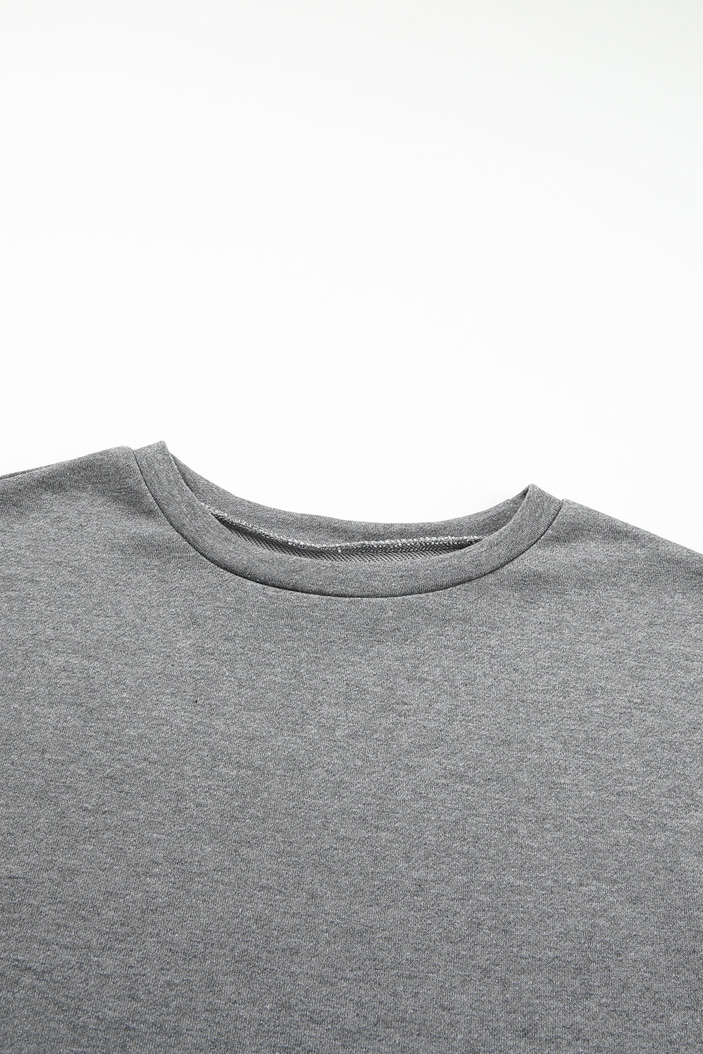 Dark Grey Printed Fringed Ruffled Accent Sweatshirt Dress